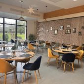 Enjoy the pleasures of the table in a modern, spacious setting,