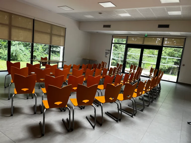 Finis les transferts entre l’hôtel et la salle de réunion ! Sur place, vous disposez d’un hébergement collectif et de plusieurs espaces de travail dans un seul et même lieu. Nous proposons la location de salles de réunion modulables s’adaptent facilement à votre format : présentation plénière, atelier en petit groupe ou brainstorming informel. Grâce à leur lumière naturelle et à une configuration flexible, elles créent un cadre propice à la concentration comme à la créativité. Un vrai gain de temps et d’énergie pour vos collaborateurs.
