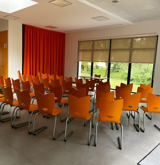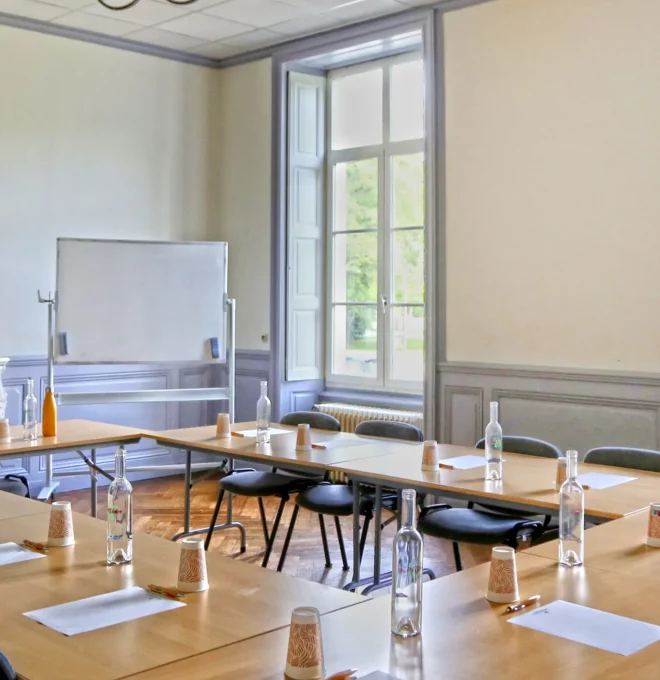 Les salles du domaine s’adaptent à vos besoins : réunion en petit comité, séminaire résidentiel, formation, conférence ou journée d’étude. Grâce à un agencement flexible et un mobilier modulable, vous pouvez configurer chaque espace de travail selon votre programme : plénière, atelier, ou format cocktail.